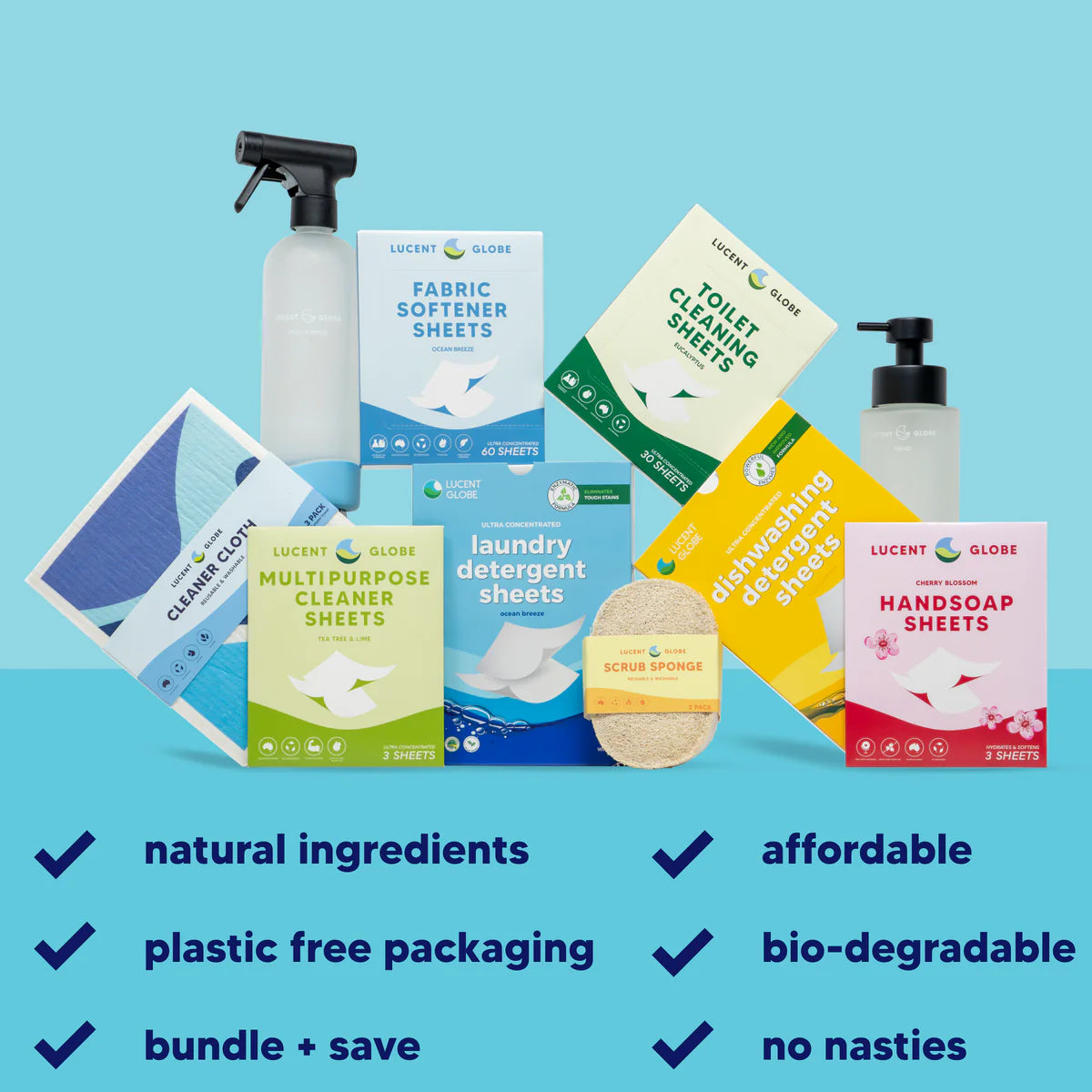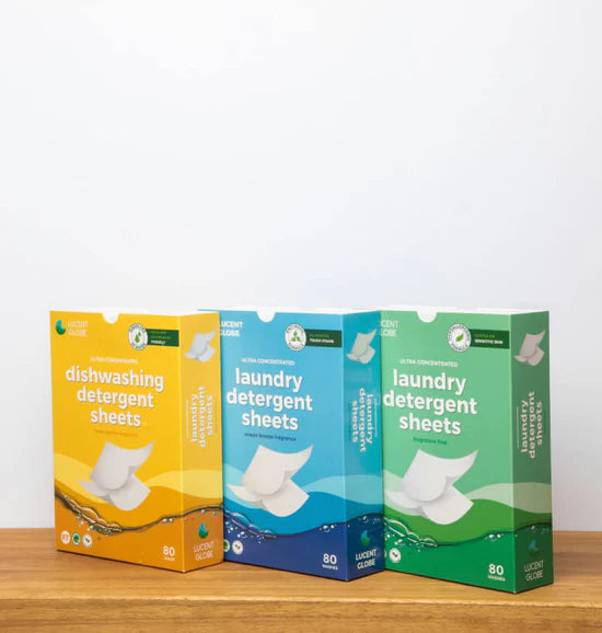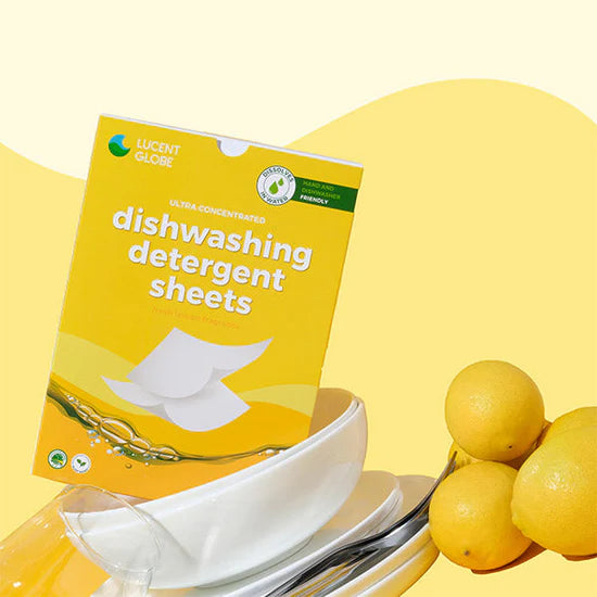 Lucent Globeの食器洗いシートで、手間やゴミ、化学物質なしで強力な洗浄を実現。各シートは完璧に計量されています。